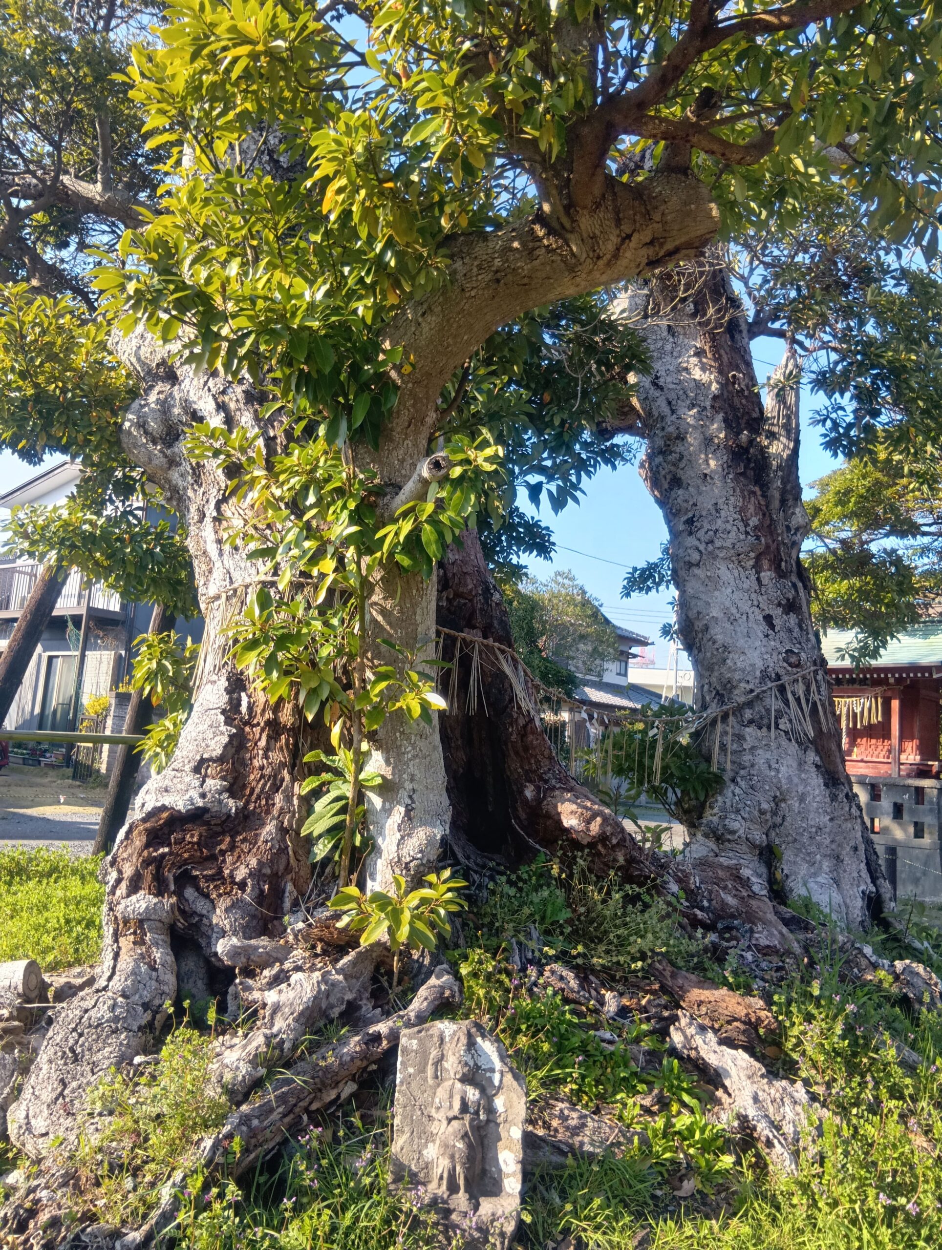 この神社を見守る大玉楠の御神木は、樹齢の記録こそ残っていないものの、500年の歴史をもつ神社とともに長い年月を重ねてきました。