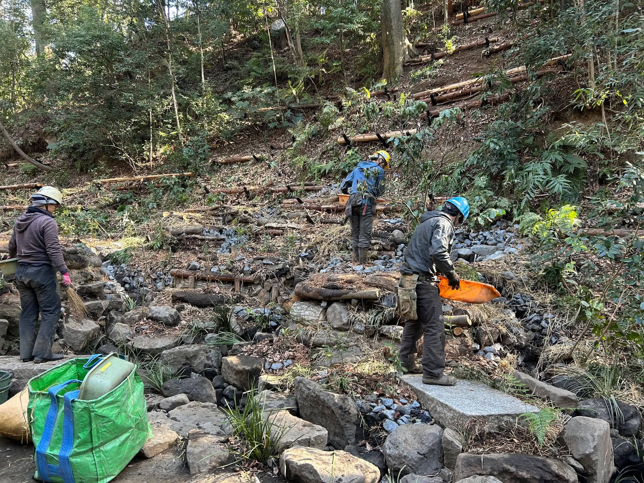 2026年現在進行中の等々力渓谷の環境改善にて、土中に竹炭を活用頂いてます。