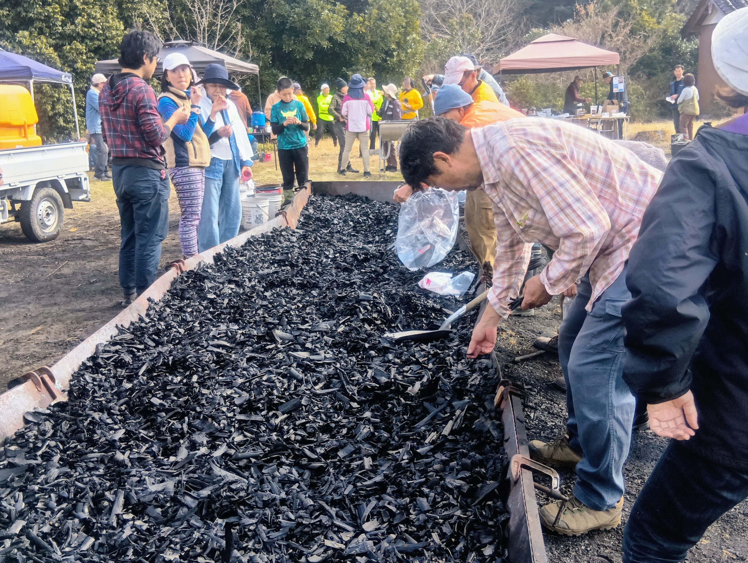 出来上がった竹炭を手に取り、真剣なまなざしで確かめる皆さまの姿が、とても印象的で、嬉しく感じられました。