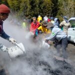 今回の竹炭づくりは、材の投入の重なりも良く、炎も美しく上がり続けました。