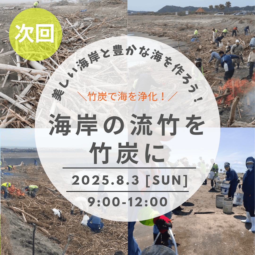 海岸に流れ着いた竹を竹炭にして、美しい海岸に戻しながら、竹炭の力で豊かな海へ!