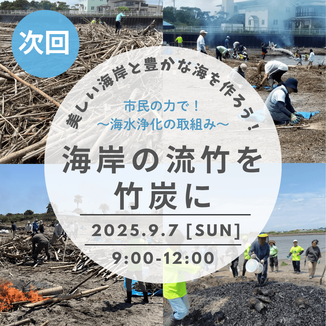 海岸に流れ着いた竹を竹炭にして、美しい海岸に戻しながら、竹炭の力で豊かな海へ!